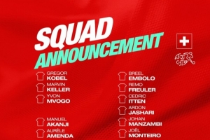 瑞士世预赛名单:扎卡领衔,科贝尔、亚沙里、阿坎吉、恩多耶在列