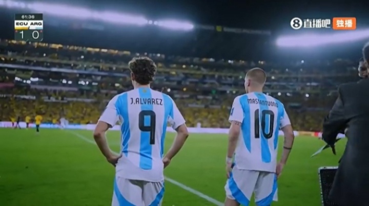 体育资讯09月10日讯 世预赛南美区收官战,厄瓜多尔主场vs阿根廷。第62分钟,马斯坦托诺身披阿根廷10号球衣替补出场,成为阿根廷队史最年轻的10号!