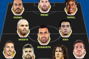 体育资讯9月26日讯 Onefootball列出了由拉玛西亚青训球员组成的阵容,梅西、哈维、伊涅斯塔、亚马尔在列。
