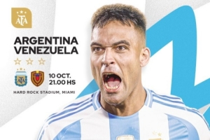 体育资讯10月10日讯 北京时间周六早间的国际足球友谊赛,阿根廷将会和委内瑞拉交手,这场比赛会在迈阿密的硬石体育场进行。目前,阿根廷国家队发布了本场比赛的预热海报,劳塔罗单人出镜。