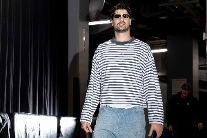 杨瀚森白色连帽衫套装清爽干练,霍勒迪也是棕色套装,阿夫迪亚居家风搭配黑超,格兰特上衣印有宫崎骏动画《千与千寻》。