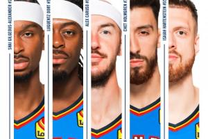 本场比赛,卫冕冠军俄克拉荷马雷霆的首发阵容是: