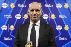 体育资讯10月25日讯 意甲官方晒照,米兰主帅阿莱格里在米兰对阵比萨赛前领取了九月最佳教练奖杯。
