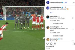 体育资讯11月16日讯 欧冠官方ins今日对比了梅西和赖斯的任意球