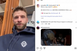 他还通过视频向球迷们寄语:“伙计们,我都不知道该说什么了。我很自豪能够成为这支球队的一员,我非常开心,为球迷们也为这座城市感到开心。我们晋级西部决赛了!”